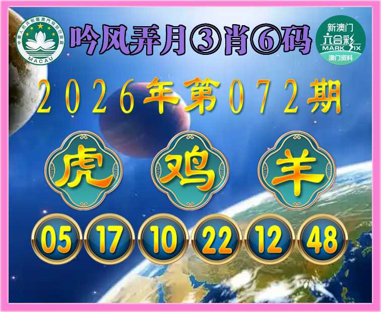 072期:《吟风弄月》 ♠️③肖⑥码♠️【虎鸡羊】开:鸡46准