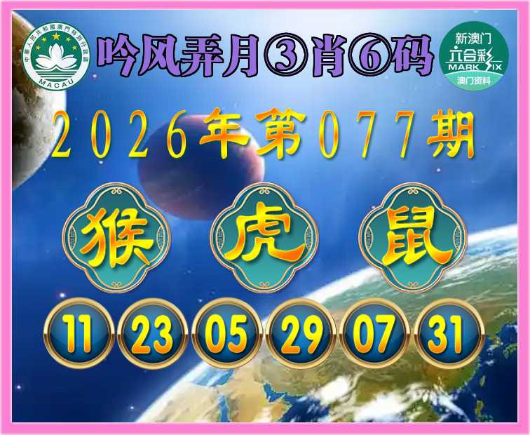077期:《吟风弄月》 ♠️③肖⑥码♠️【猴虎鼠】开:虎29准